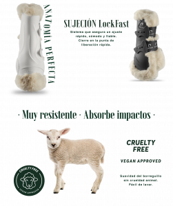 Los protectores Gatusos® de la línea professional están fabricados en Borreguillo y carcasa de TPU, una combinación perfecta para tu caballo.