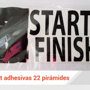 Set de 22 pirámides fabricadas en plásticos de alta calidad y resistentes a la intemperie. Apilables par almacenaje. Adhesivas en las 4 caras.